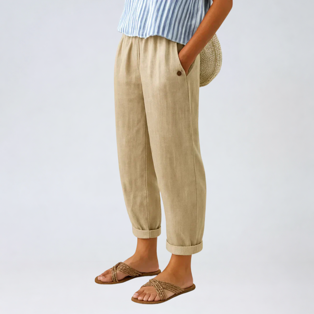 Breathe easy and move freely in the Sharona Timeless Linen-Cotton Trousers — where comfort meets sophistication. Made from a premium linen-cotton blend, they’re lightweight, airy, and soft to the touch, keeping you cool and effortlessly elegant all day. With a relaxed yet refined silhouette, Sharona transitions smoothly from casual afternoons to polished evenings. Pair it with a crisp blouse or a simple tee for timeless, effortless style.